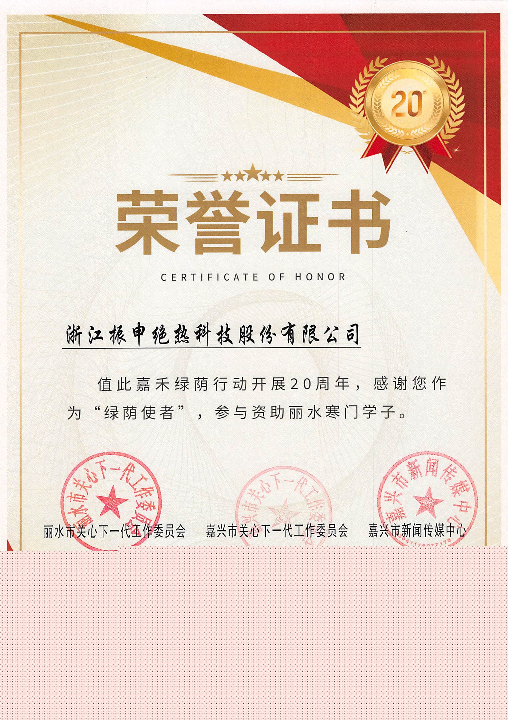 振申絕熱,作為行業(yè)內(nèi)的領(lǐng)軍企業(yè),始終以高度的社會(huì)責(zé)任感和使命感,長(zhǎng)期不懈地投身于公益事業(yè)之中。在我們了解到嘉禾綠蔭行動(dòng)這一具有深遠(yuǎn)社會(huì)意義的項(xiàng)目時(shí),我們毫不猶豫地決定加入這一行列,貢獻(xiàn)出我們的一份力量。