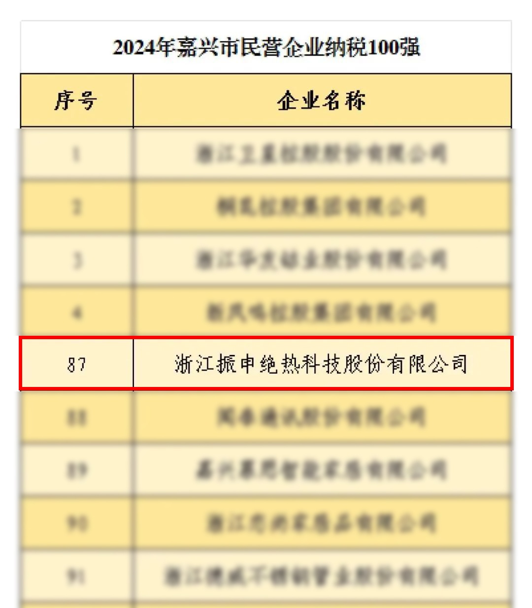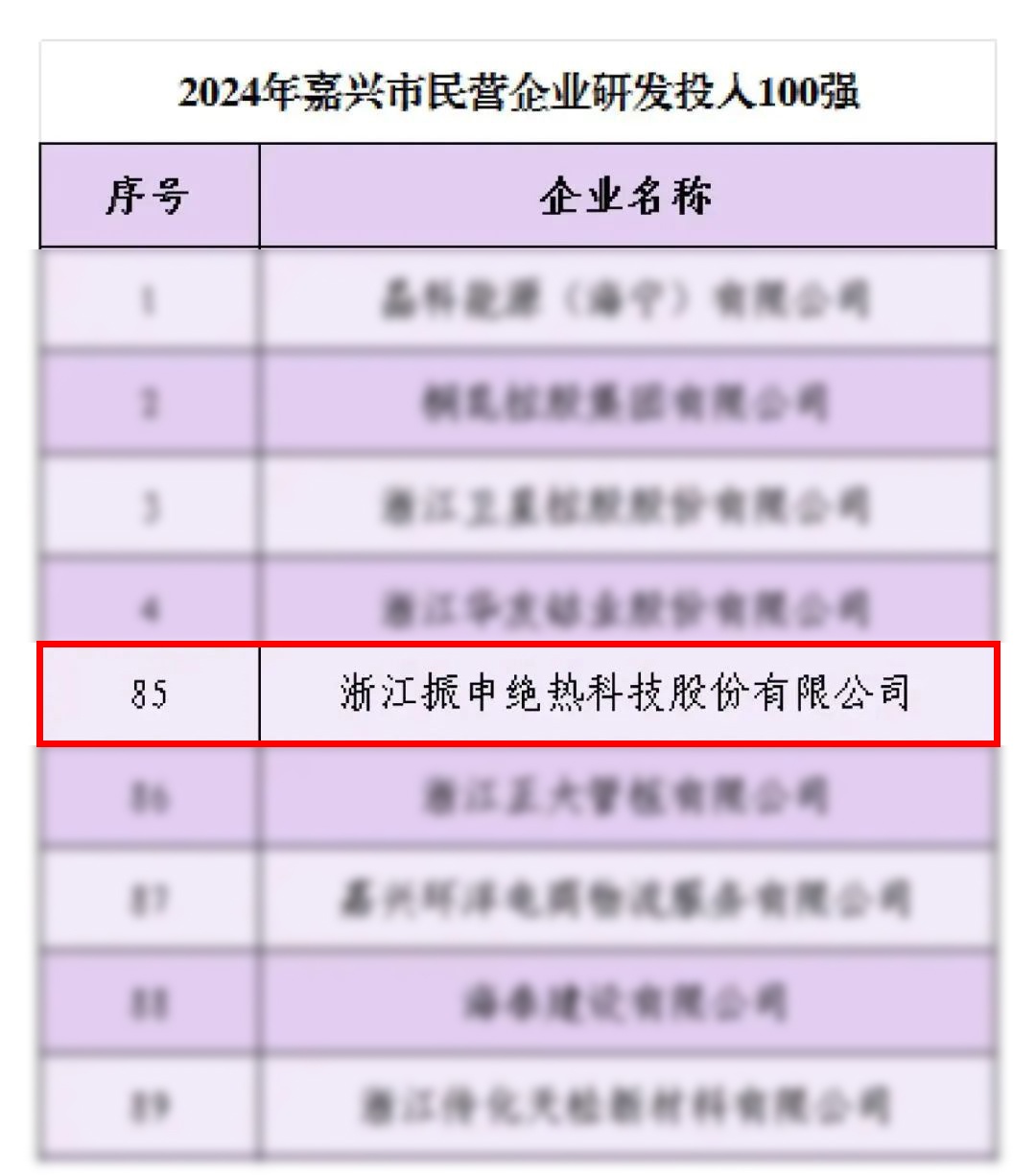 在 2024 年嘉興市民營企業(yè)的評選中,振申絕熱脫穎而出,榮登【利潤 100 強】、【研發(fā)投入 100 強】、【納稅 100 強】三張榜單!這一輝煌成就,不僅是對振申絕熱過往努力的高度認(rèn)可,更是其未來發(fā)展的強大動力。